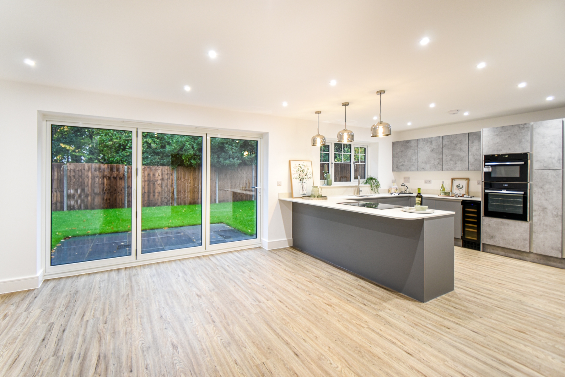 These two four bedroom detached houses have been built to a very high standard. They feature a stylish open plan kitchen diner with bi-fold doors leading to a rear garden.